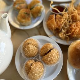 Good Cantonese place. We were a huge party and they gave us a private alcove which was nice. Ordered a bunch of food and had a lot of leftovers. All delicious. My favorite was the jelly fish, eggplant stuffed with shrimp paste and orange chicken. The eggplant was cooked perfectly and I loved the sauce. The shrimp paste didn’t look too processed and it tasted more like actual shrimp in the eggplant, it was very good. The scallion pancake was too thin and bland. The tea they serve is good and the waiter was attentive. The buns we got were just okay, the soup dumpling was nothing special, the flavor didn’t wow me. The pineapple fried rice was pretty good and had a lot of canned pineapple in it which I wanted. Decent food all in all. And huge menu with many choices.